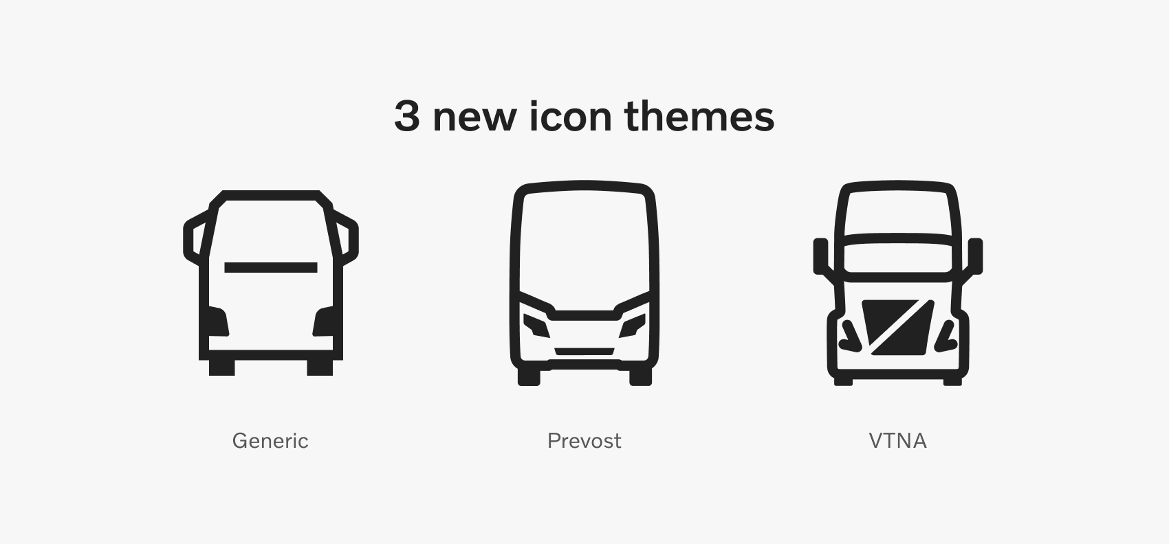 The Volvo Group system icons library has expanded with 2 new branded themes, for Volvo Trucks North America and Prevost. We also published a Generic theme, to accommodate more teams and projects.